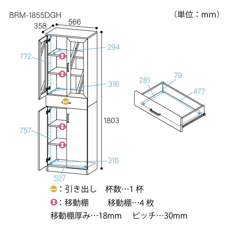 他の画像を見る お気に入りに登録する 食器棚 幅57cm 高さ181cm ダークブラウン キッチン収納 シンプル ベアルモ BRM-1855DGHBR 新着 幅56.6 × 奥行35.8 × 高さ180.3(cm) ¥ 19,800 税込