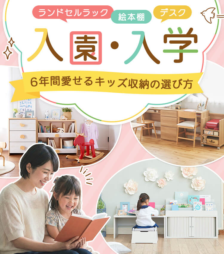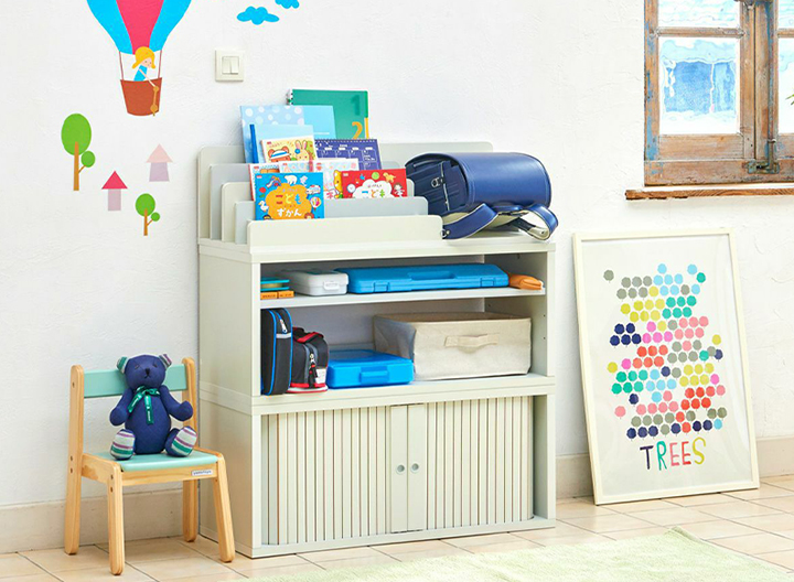 組み合わせ自在。幼児期はおもちゃ棚、入学後はランドセルラックとして変身。