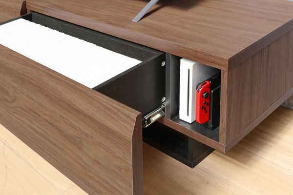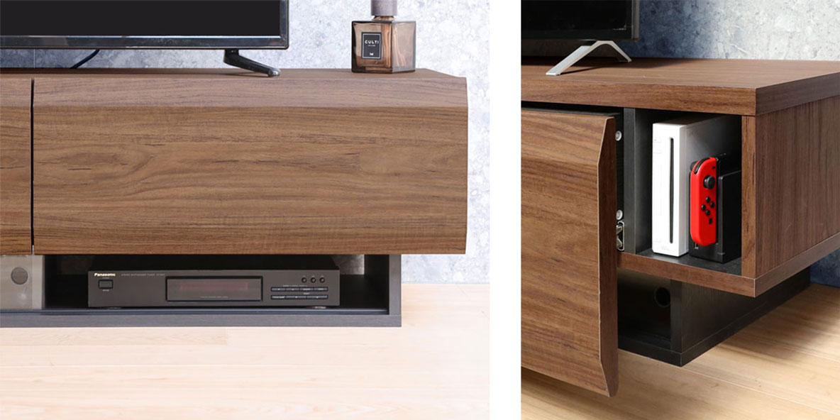 他にも、立てて収納・充電するWiiやSwitch、Wi-Fiホームルーターを収納できるスペースもあります。※150cmと180㎝は、左右両方に収納スペースがあります。120㎝は右側のみです。