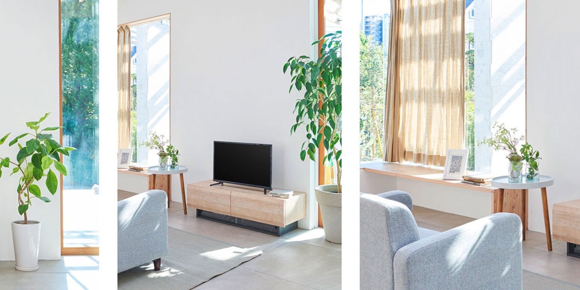 メインの顔となるテレビが引き立つよう、シンプルさ・デザイン性を追及して開発されました。