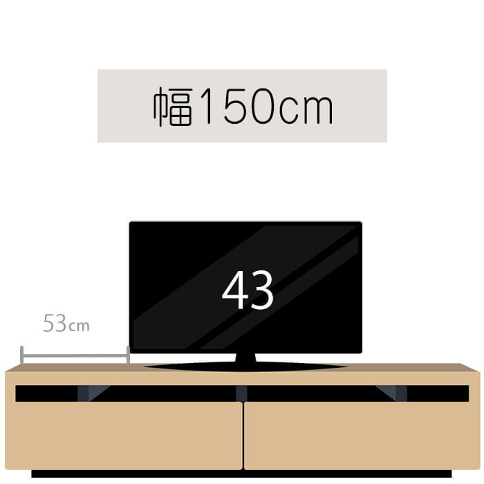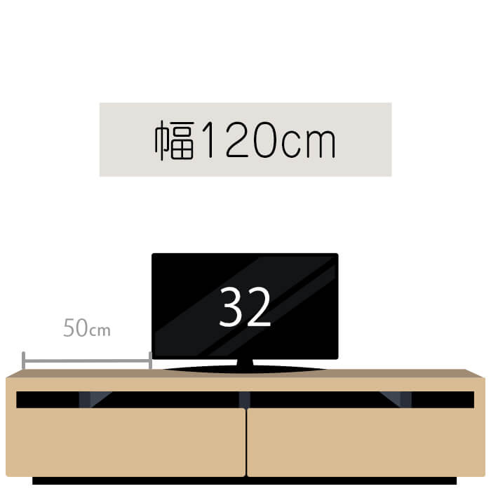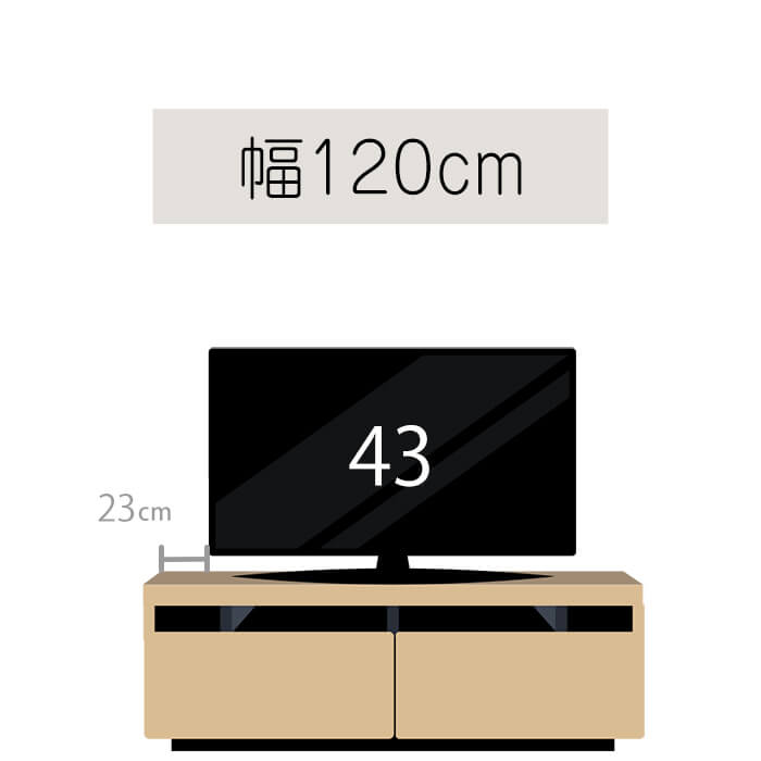 43V型テレビとテレビ台のバランスが良く見える120cm幅です。部屋にスペースがないけど、大き目のテレビをお持ちの方におすすめです。