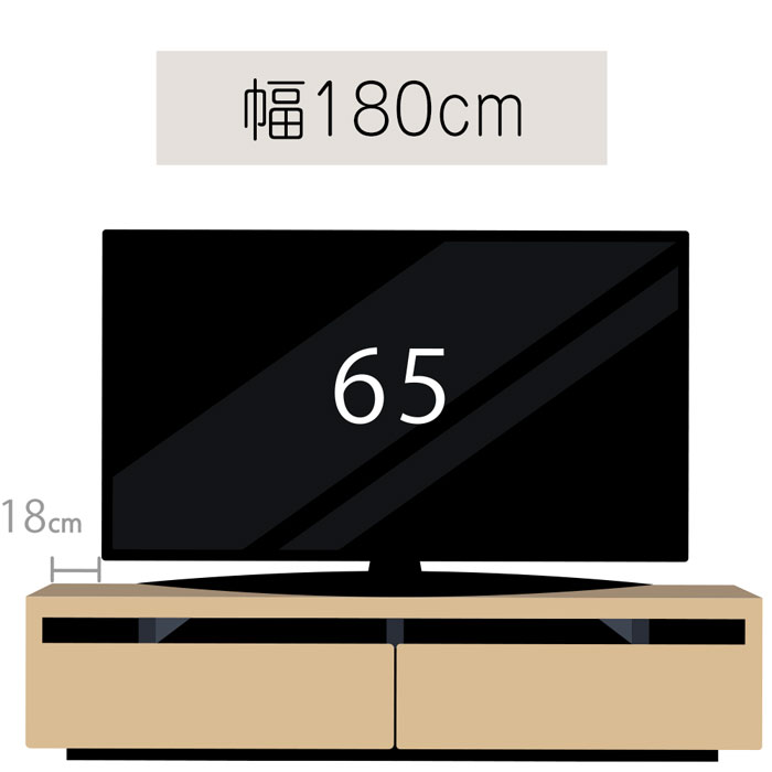 50V型テレビとテレビ台のバランスが良く見える180cm幅です。テレビ台に収納力を求める方におすすめです。