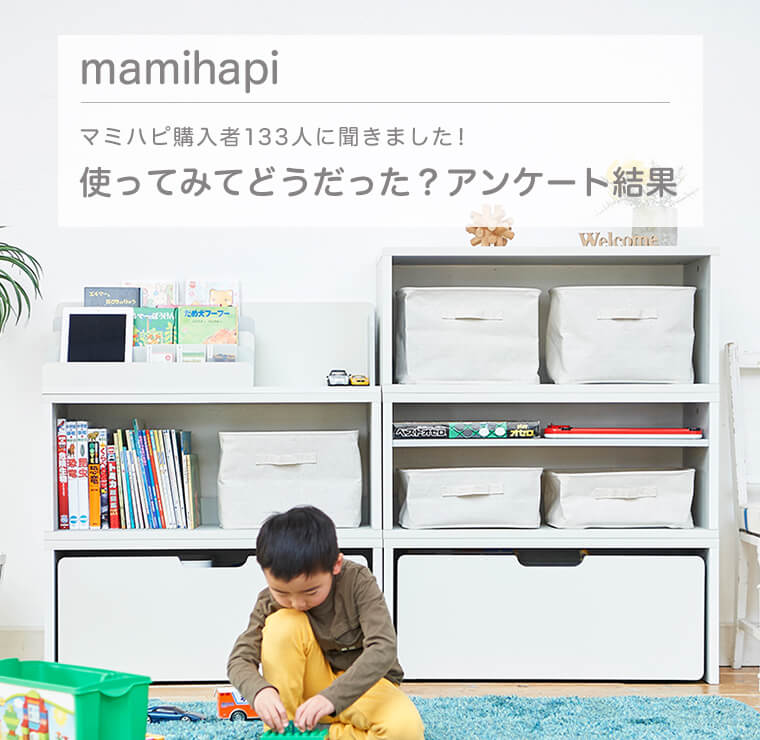 マミハピを使ってみると「部屋が片付いた」「子供が取り出しやすくなった、自分で片付けるようになった」などの声がありました。お子さんたちも、おもちゃが選びやすくなったり自分専用のスペースができたりして、嬉しくて自分からたくさん使ってくれているようです。子供の成長が見られてママたちもHappyになってくれています!
