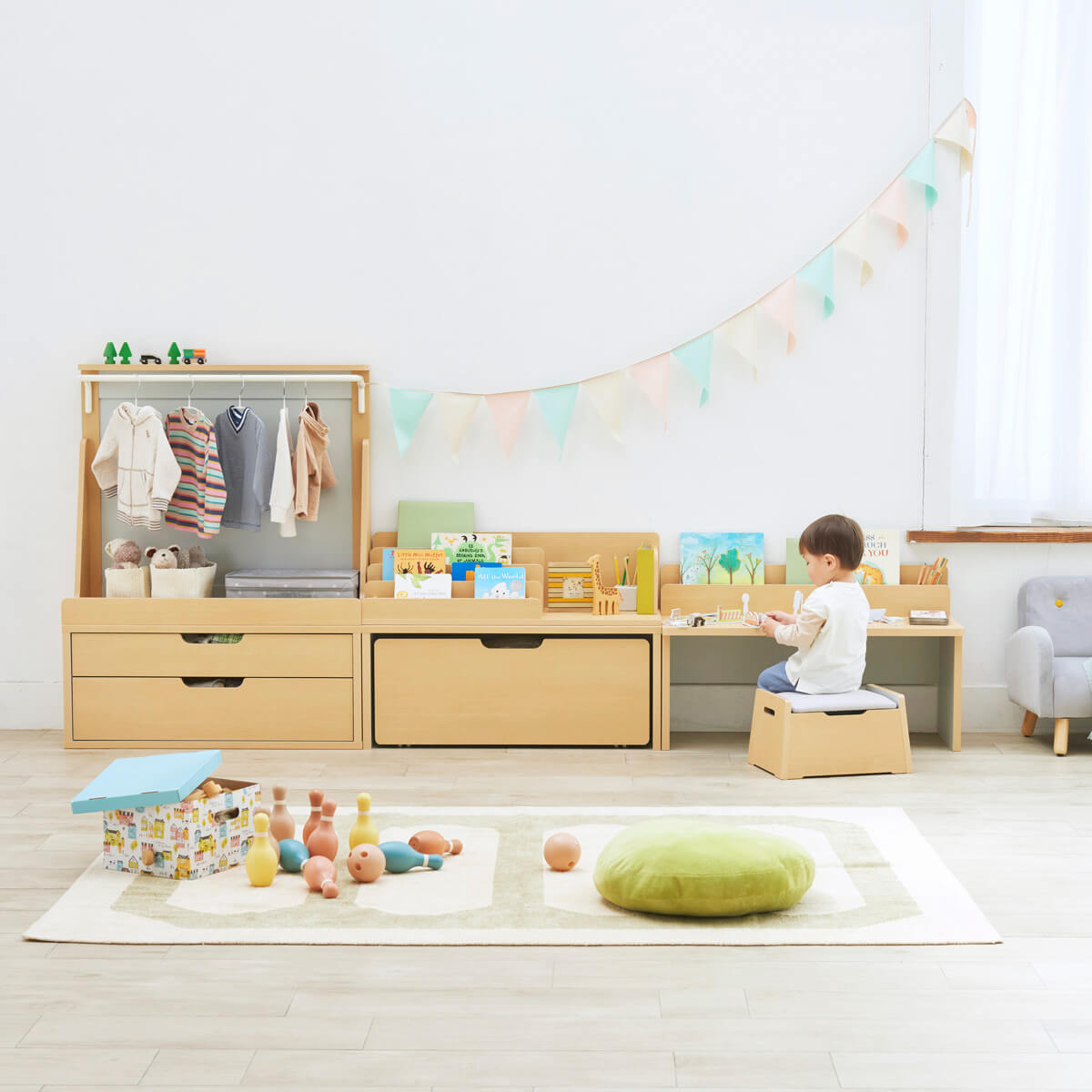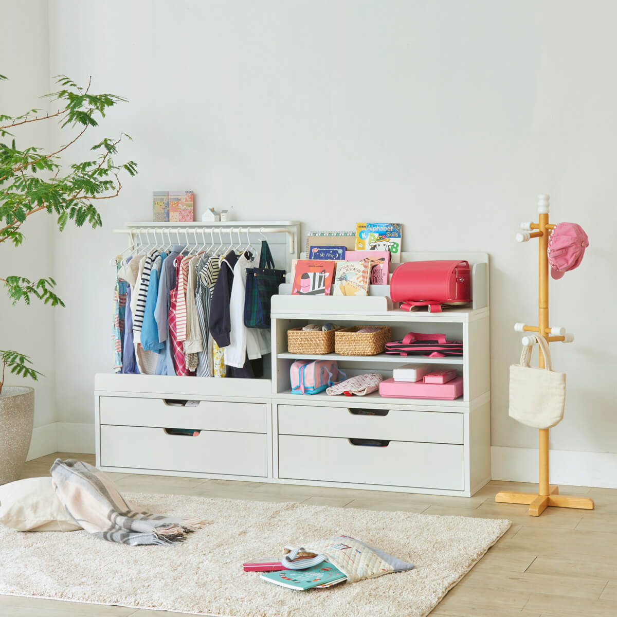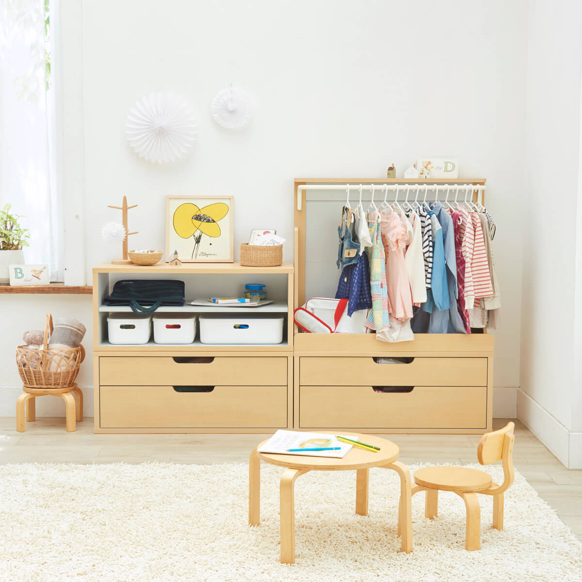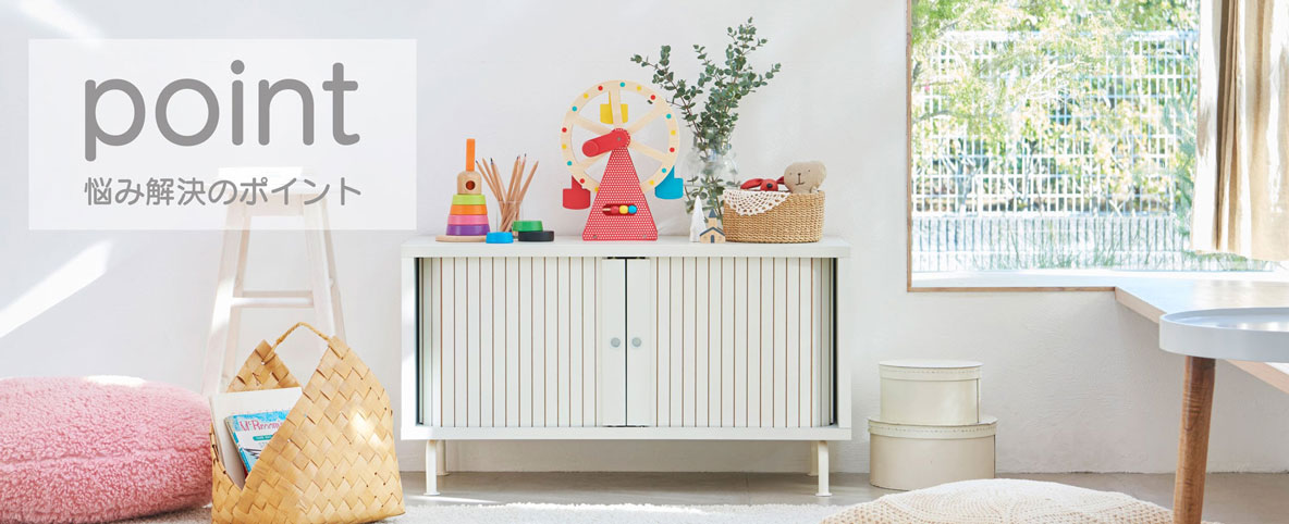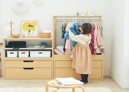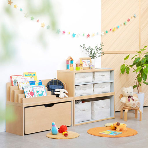 たくさんの絵本やおもちゃ・子供服もすっきりと収納できるキッズ家具シリーズです。