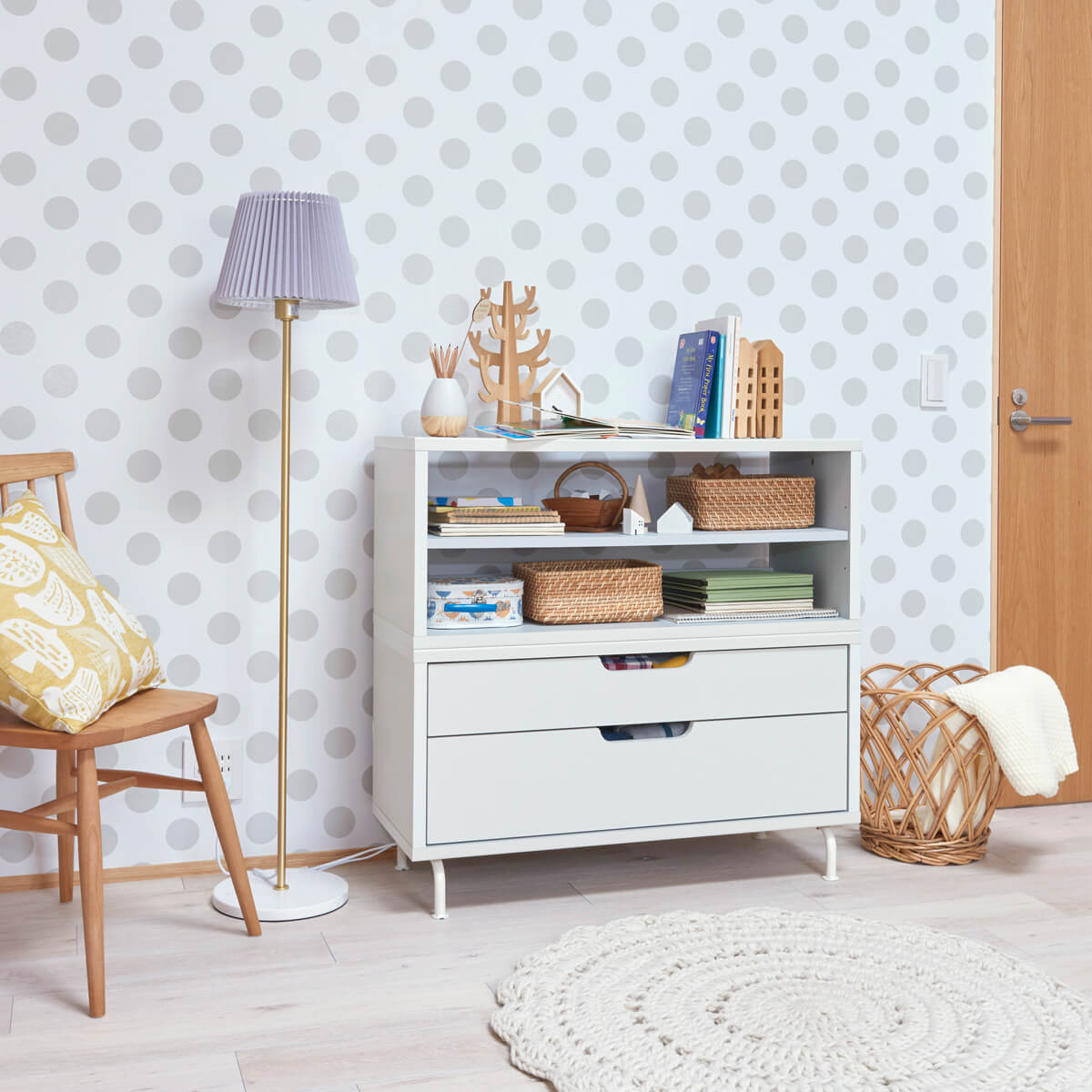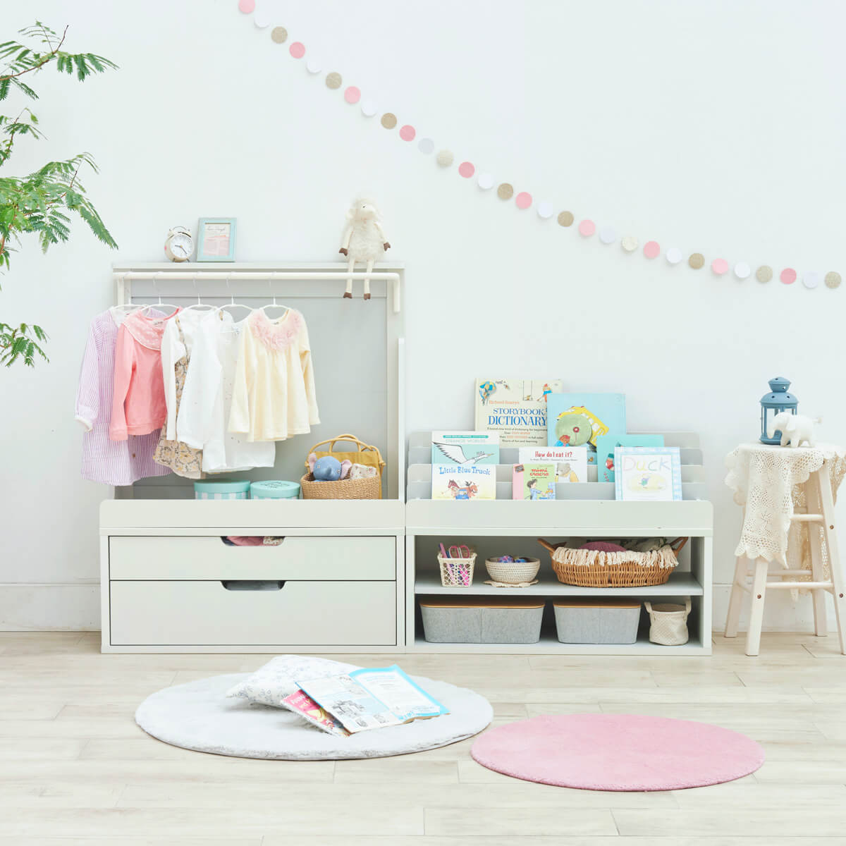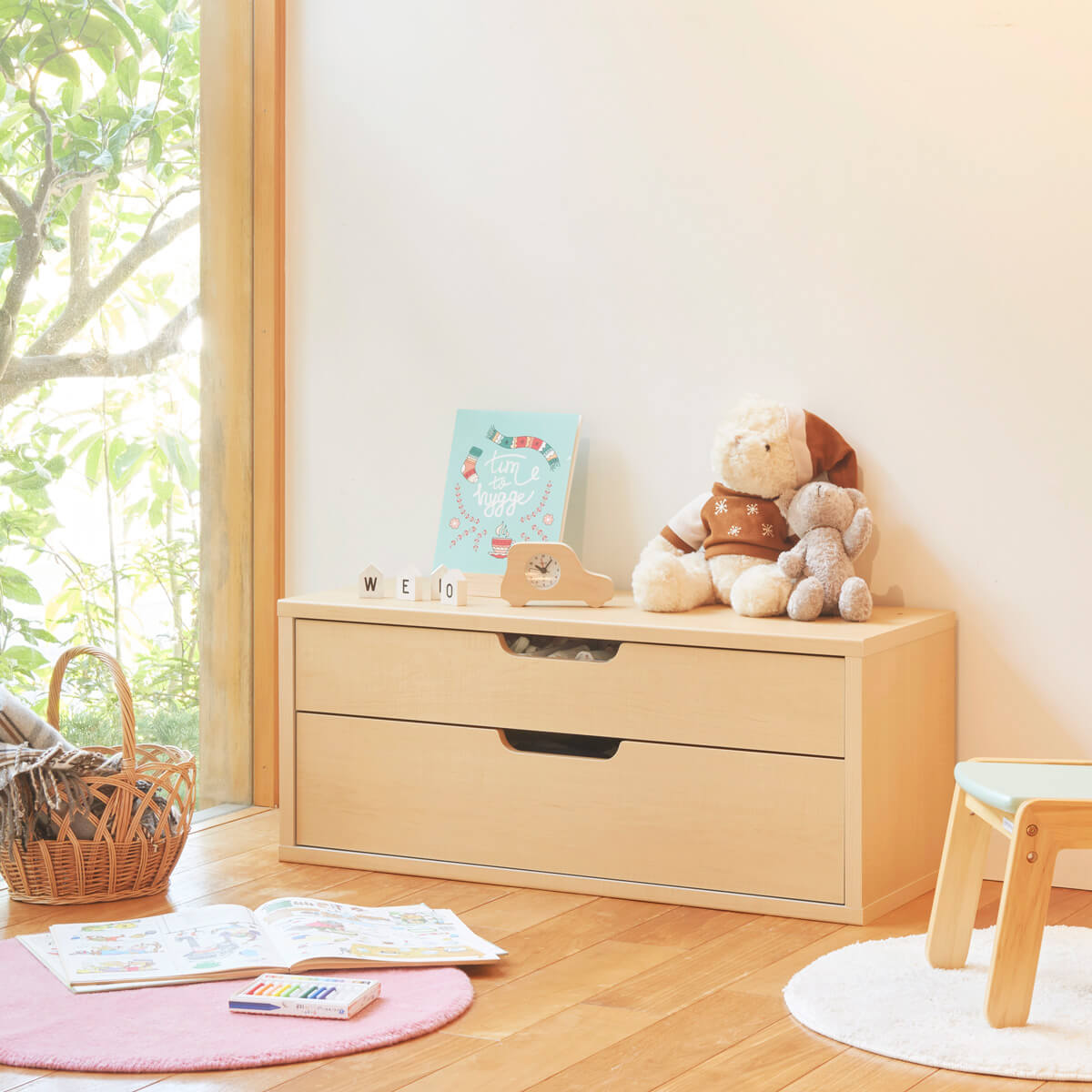 たくさんの絵本やおもちゃ・子供服もすっきりと収納できるキッズ家具シリーズです。