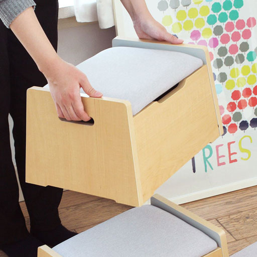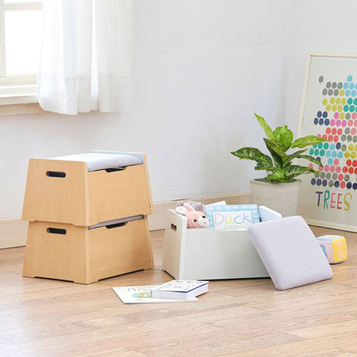 座面を外すと、椅子の中に小さいおもちゃやぬいぐるみを収納できます。