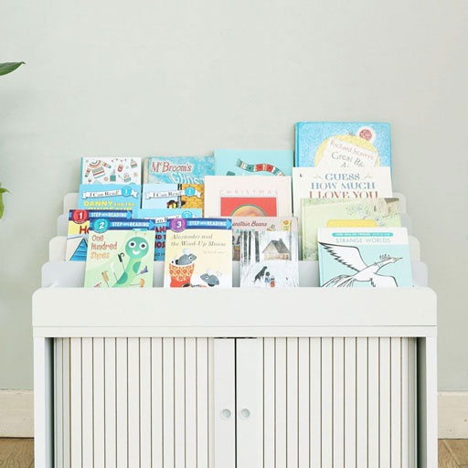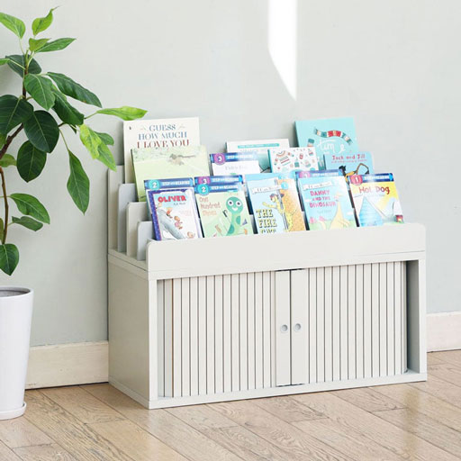 左右両方のスペースに絵本を収納すれば、よりたくさんの絵本を収納することができます。お気に入りの絵本や表紙が素敵な絵本は左側に、その他の絵本は右側にして分類収納もできます。