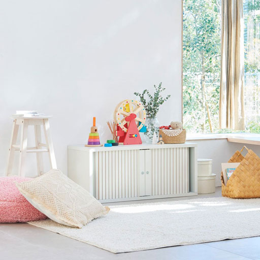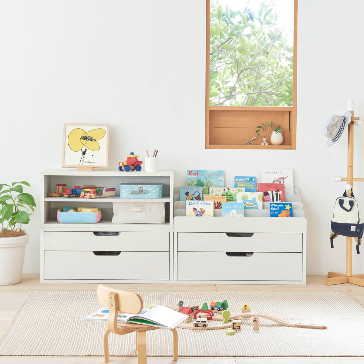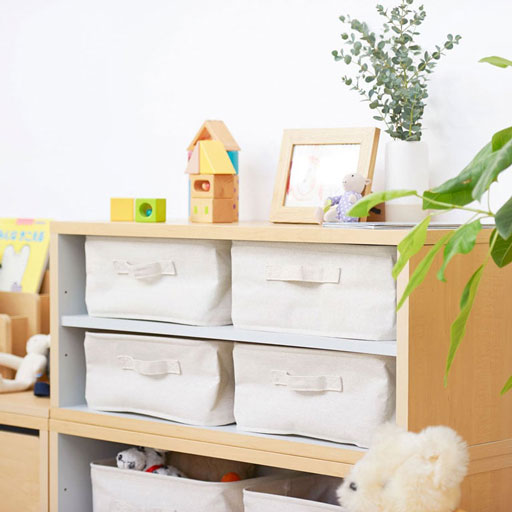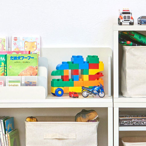 子供の絵本やおもちゃは大きさ・形はバラバラでカラフルなモノばかり。子供服はどんどん増えてしまいきれない。片付けはむずかしくてすぐに散らかるし、おしゃれな部屋にしたくても雑然とした印象になってしまいますよね。