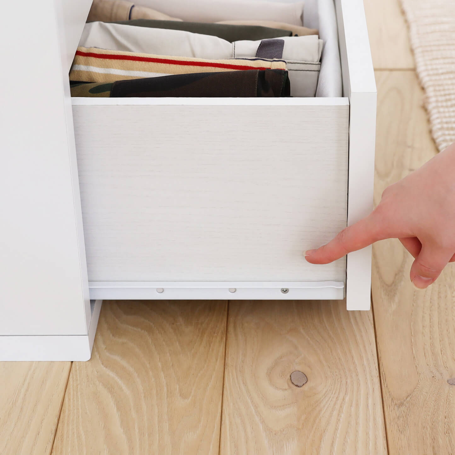 引き出しの上段は深さ8.8cm。畳むと小さくなる肌着や靴下の収納におすすめです。