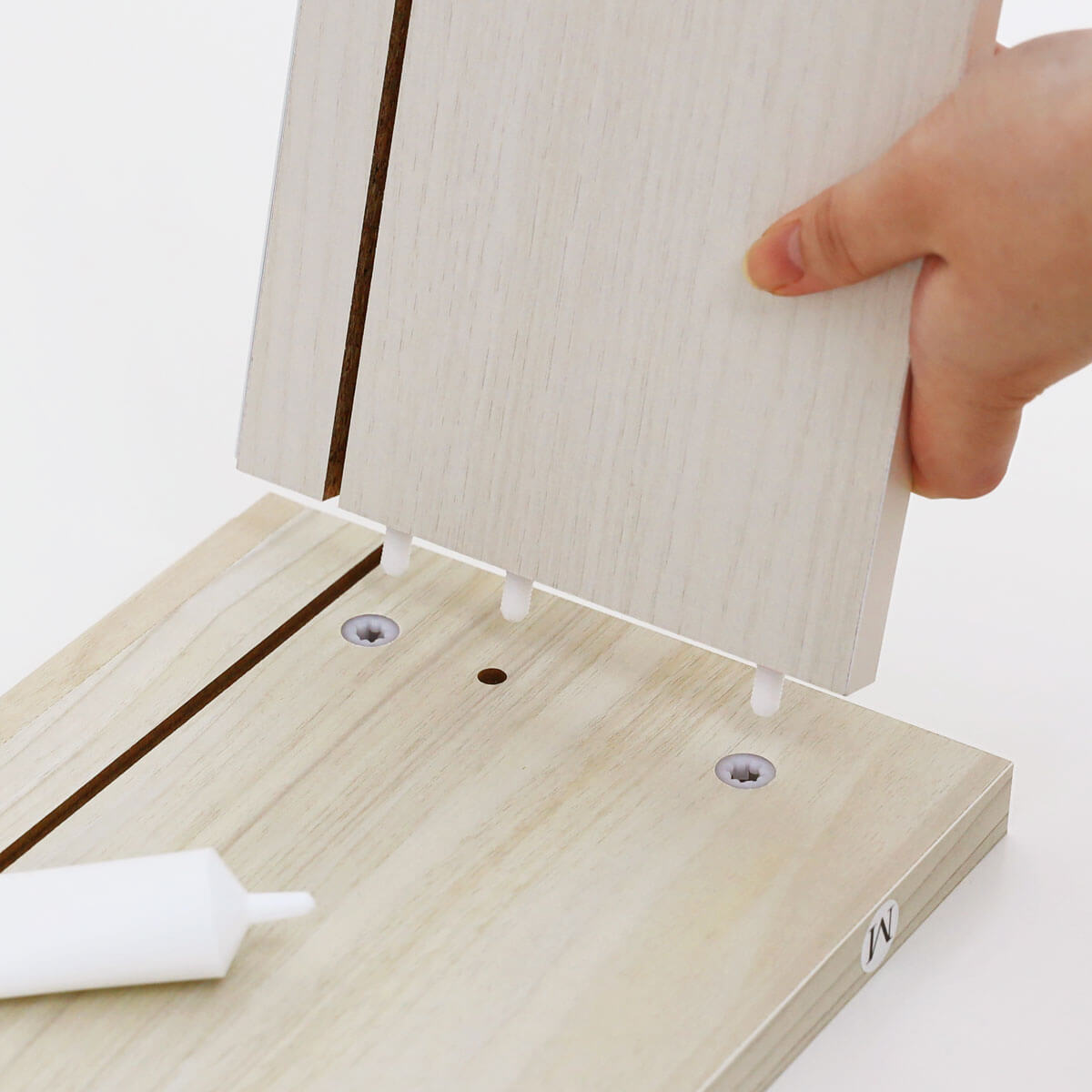 付属のネジを使って、上下をしっかりと固定できます。ネジで留めるから組み替えも簡単です。