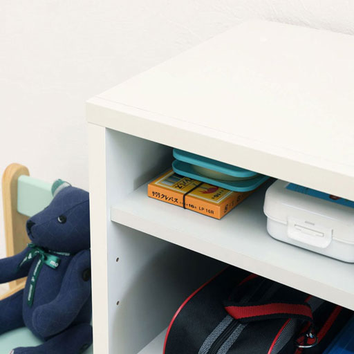 右側のスペースはランドセルも置けるサイズです。じゃばら扉ラックやオープンラックと組み合わせると、小学校の道具を収納できるランドセルラックとして使えます。