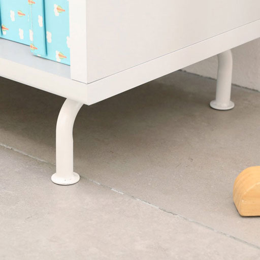 キッズ用ラックのしたを掃除機したくて取り付けました。 取り付けはネジを通すだけで簡単、シンプルで安定感もあり気に入っています。 -