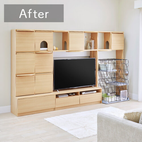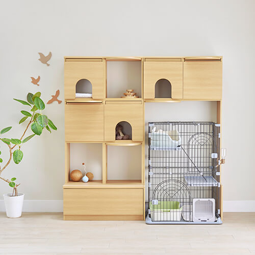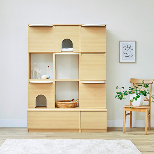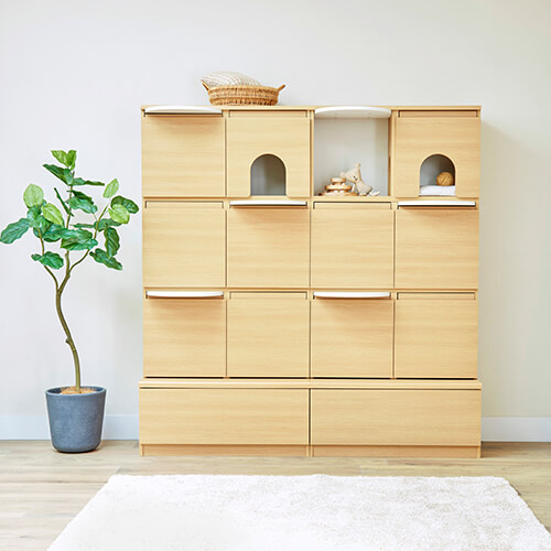 穴なし扉を使えば、猫が入れない収納スペースをつくることができます。フード・おもちゃなど猫グッズはもちろん、大切なものも安心して収納しておけますよ。※本体商品によって扉の取付条件が異なります。詳しくは各商品ページをご覧ください。