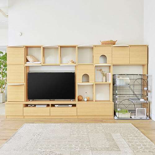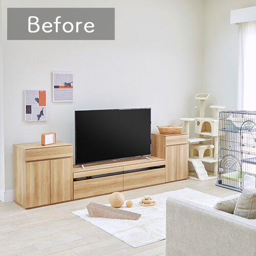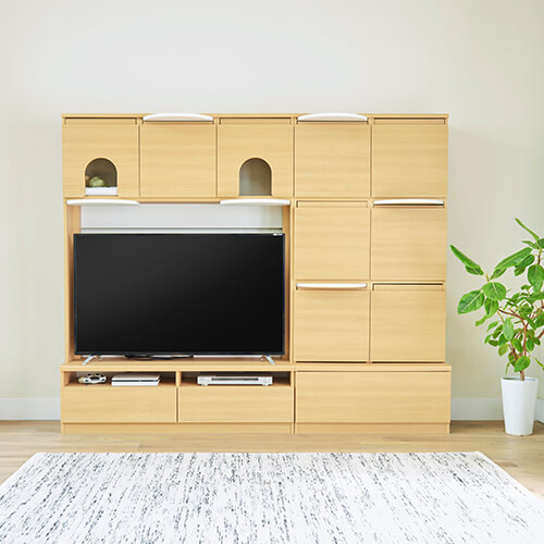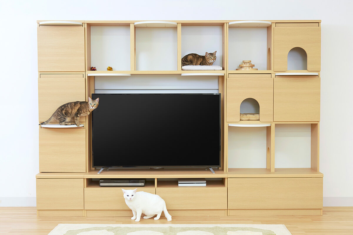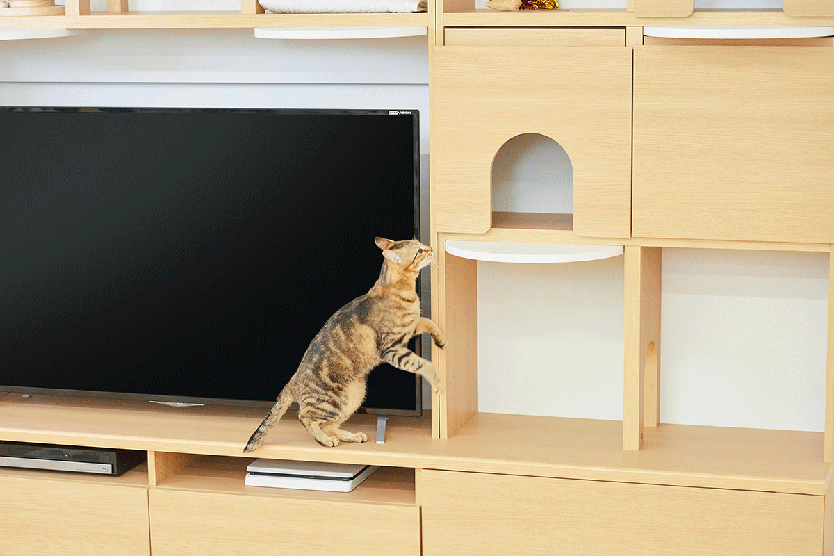 テレビ台セットなら、テレビを見ながら猫ちゃんがくつろぐ姿も眺められます。