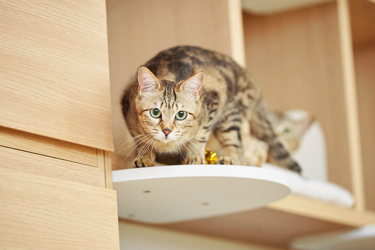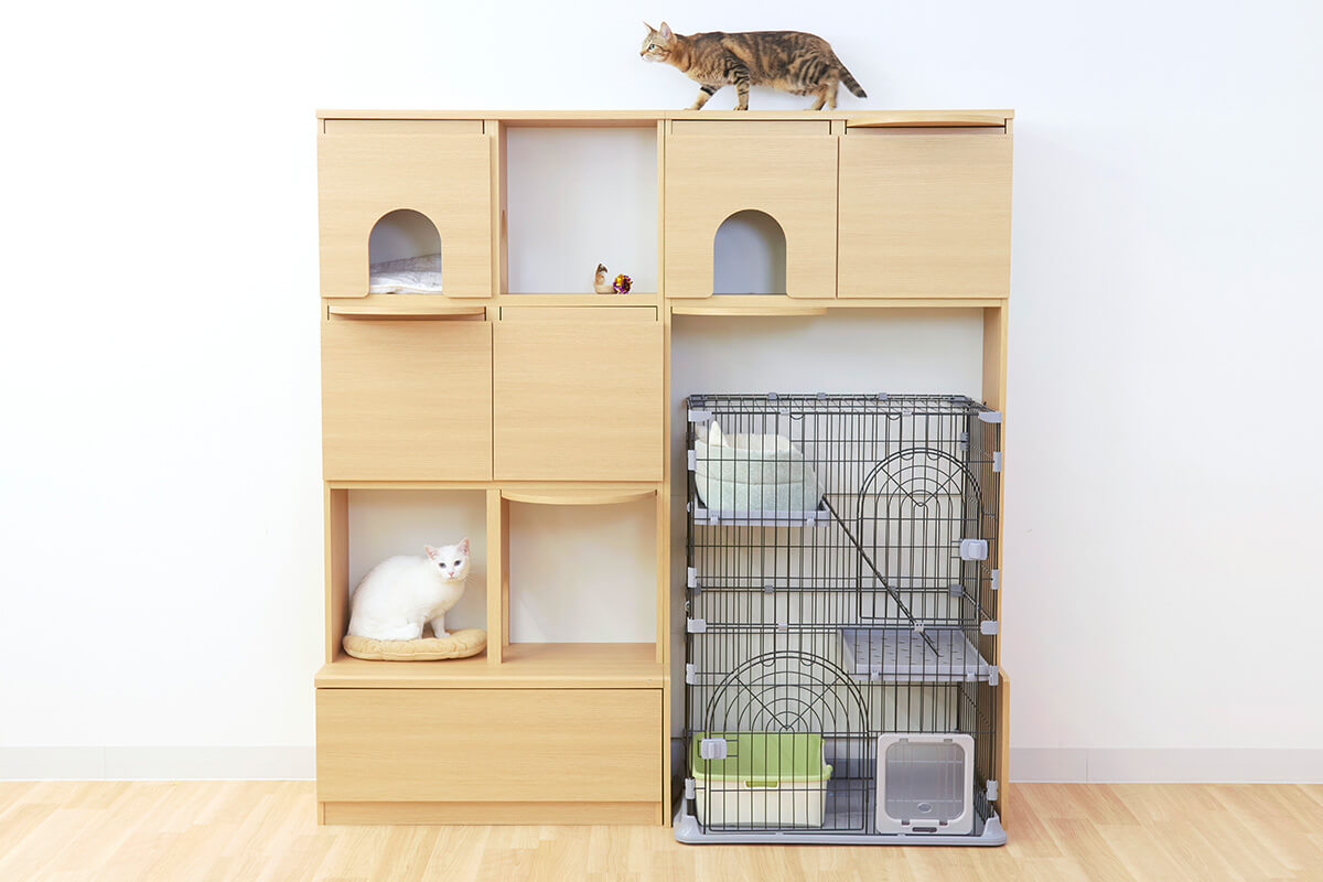 デッドスペースになってしまうケージの上も、収納やキャットウォークにして有効活用できます。