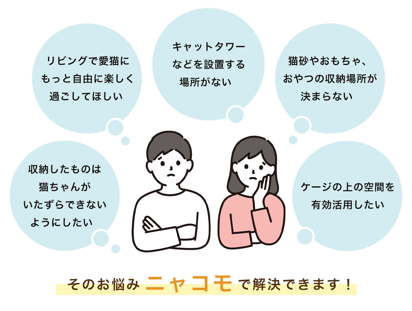 猫家具「ニャコモ」は、猫ちゃんと飼い主さんそれぞれの時間や暮らしを大切にできるように考えた、キャットウォーク一体型収納です。