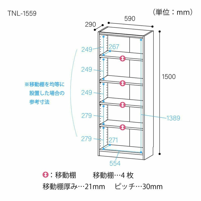 他の画像を見る フリーラック 幅59cm 高さ150cm ナチュラルオーク1 全棚可動 本棚 シェルフ タナリオ TNL-1559NA ロングセラー 幅59.0 × 奥行29.0 × 高さ150.0(cm) ¥ 11,800 税込 詳細を見る お気に入りに登録する