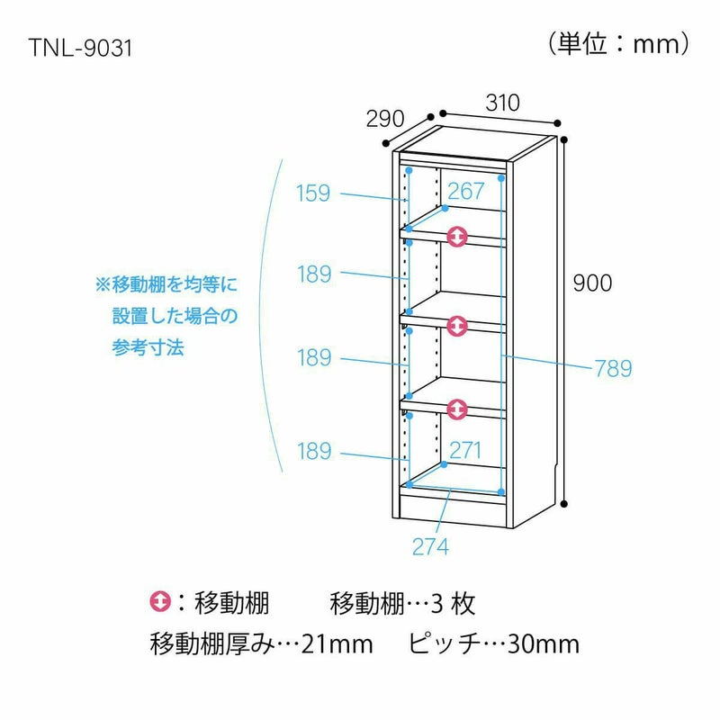 他の画像を見る フリーラック 幅31cm 高さ90cm ホワイトオーク スリム 隙間用 全棚可動 本棚 シェルフ タナリオ TNL-9031WH ロングセラー 幅31.0 × 奥行29.0 × 高さ90.0(cm) ¥ 7,480 税込 詳細を見る お気に入りに登録する