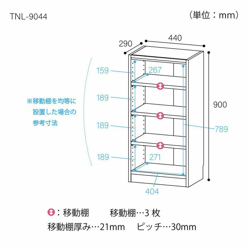 他の画像を見る フリーラック 幅44cm 高さ90cm ナチュラルオーク1 全棚可動 本棚 シェルフ タナリオ TNL-9044NA ロングセラー 幅44.0 × 奥行29.0 × 高さ90.0(cm) ¥ 8,480 税込 詳細を見る お気に入りに登録する