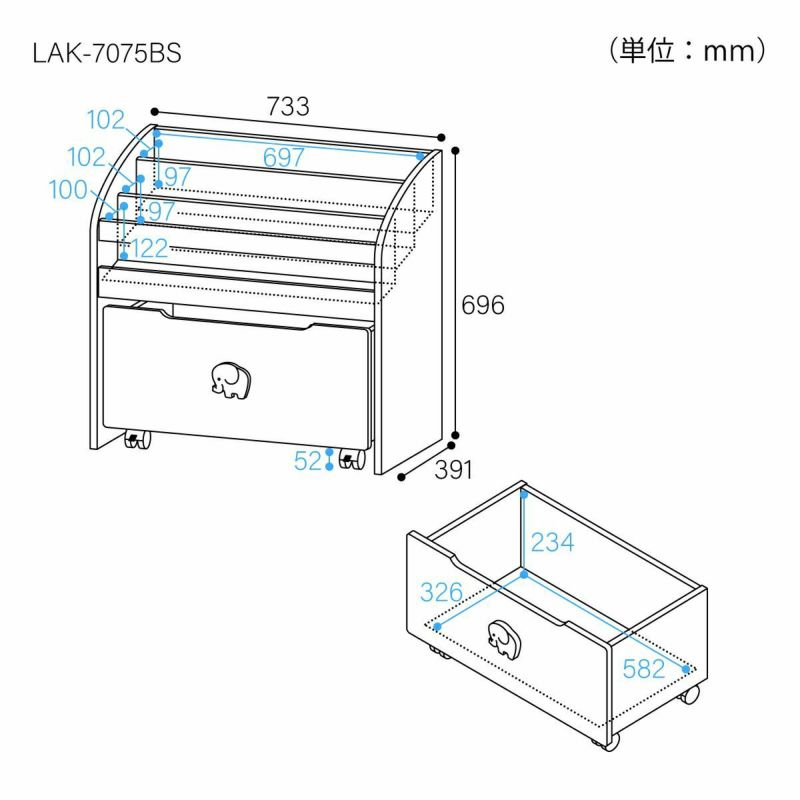他の画像を見る 絵本棚3段 ラック 幅57cm 高さ70cm ナチュラルブラウン ホワイト 白木目 北欧テイスト 子供 収納 キッズ収納 ランドキッズ LAK-7055BSB 幅56.3 × 奥行26.5 × 高さ69.6(cm) ¥ 10,800 税込 詳細を見る お気に入りに登録する