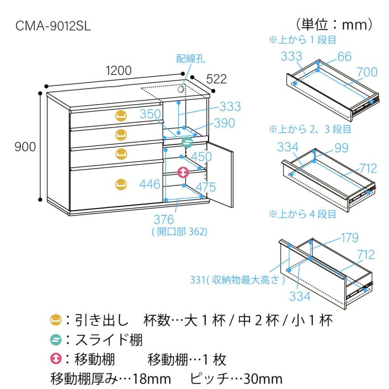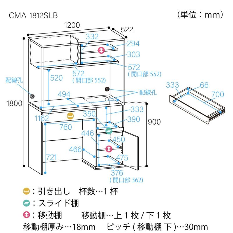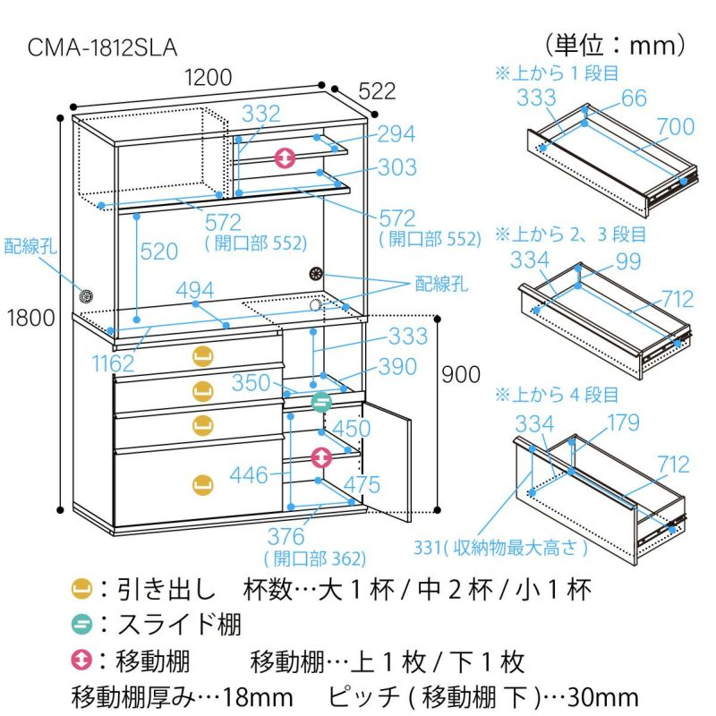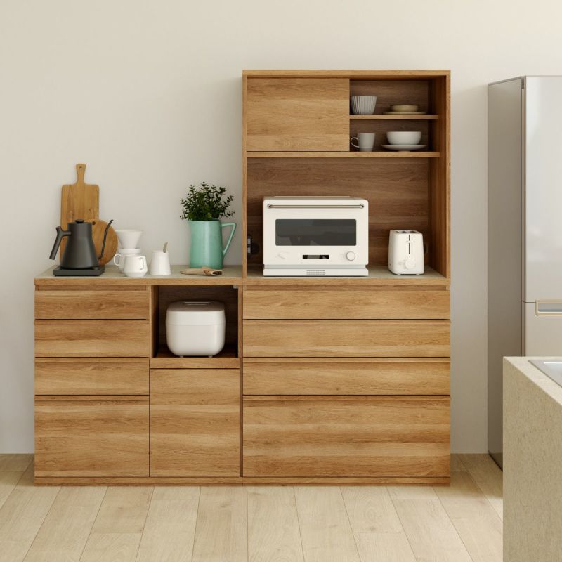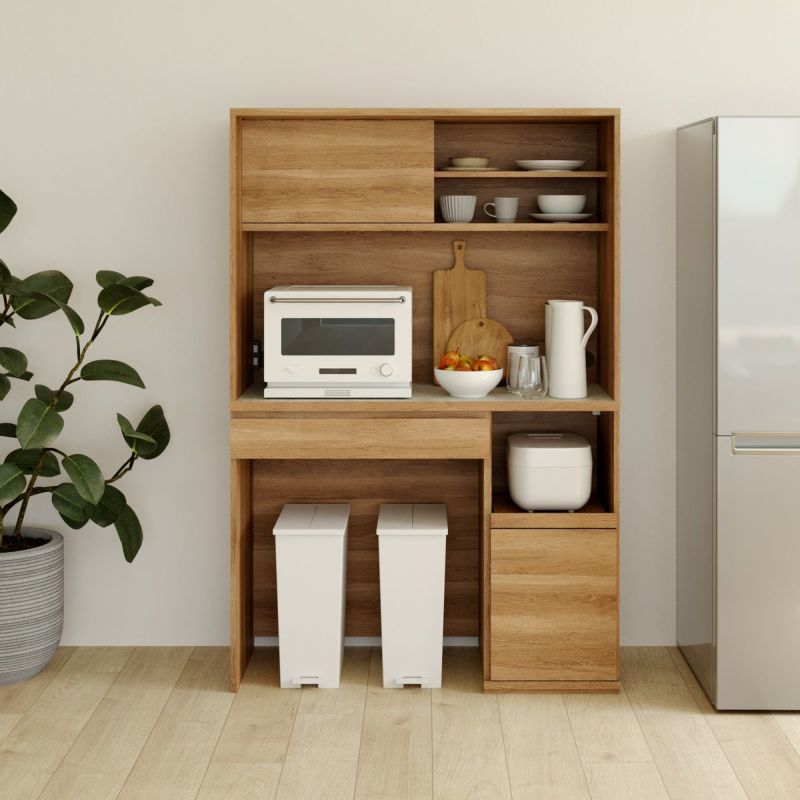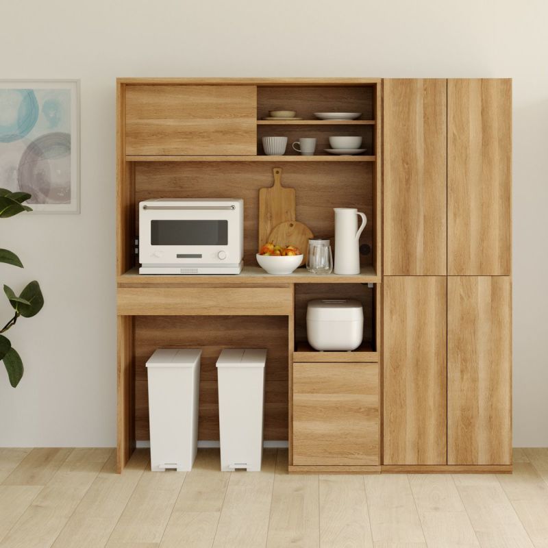 他の画像を見る キッチンボード 食器棚 レンジ台 幅120cm 高さ180cm ナチュラルブラウン 引出4段 コンセント付 メラミン天板 キッチン 家電 収納 コモピア CMA-1812SLANA 新着 幅120.0 × 奥行52.2 × 高さ180.0(cm) ¥ 49,800 税込 詳細を見る お気に入りに登録する