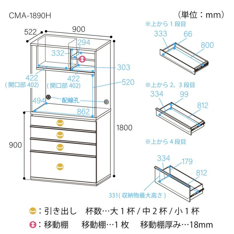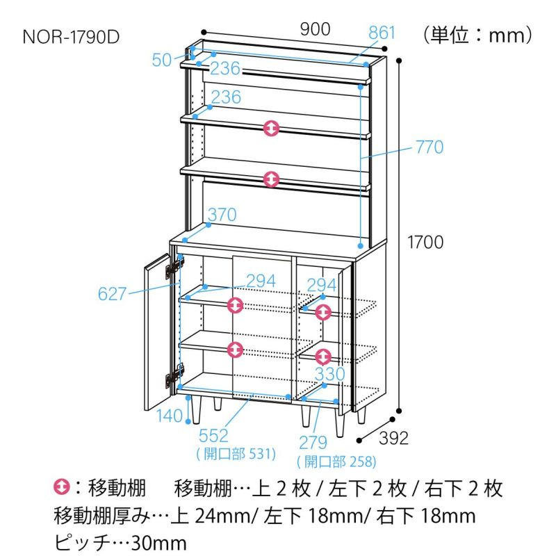 他の画像を見る キッチンボード 食器棚 レンジ台 幅90cm 高さ180cm ナチュラルブラウン 引出4段 コンセント付 メラミン天板 キッチン 家電 収納 コモピア CMA-1890HNA 新着 幅90.0 × 奥行52.2 × 高さ180.0(cm) ¥ 39,800 税込 詳細を見る お気に入りに登録する