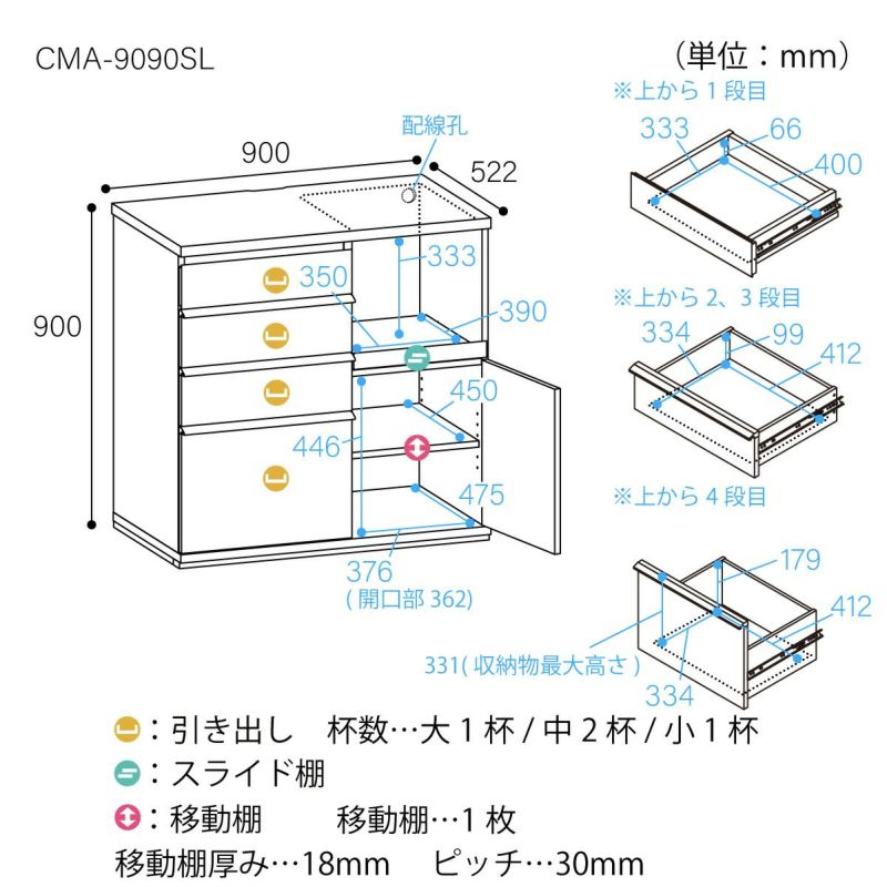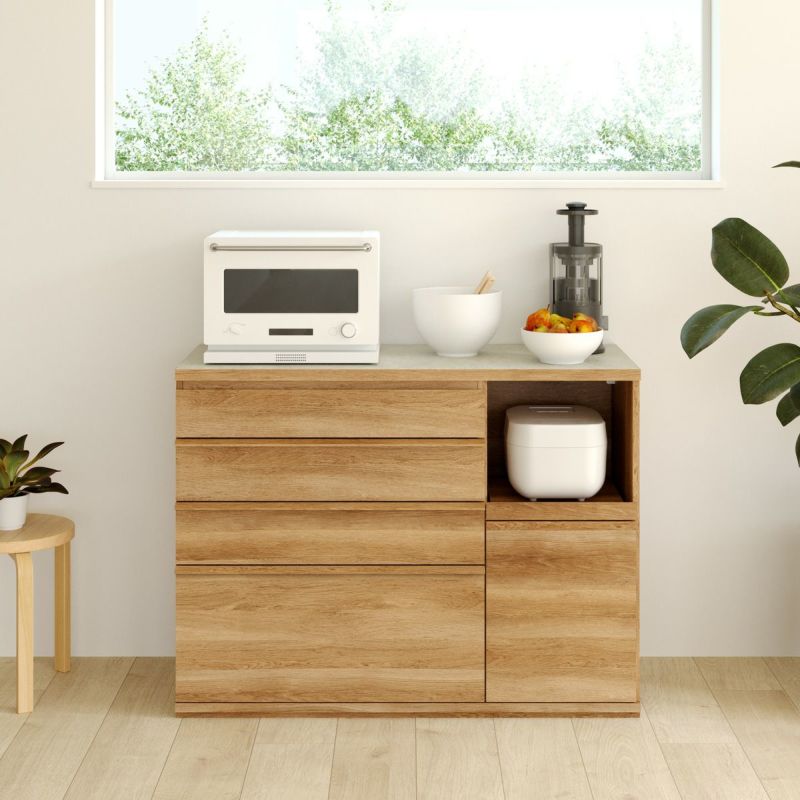 他の画像を見る キッチンカウンター レンジ台 食器棚 幅90cm 高さ90cm ナチュラルブラウン 引出4段 コンセント付 メラミン天板 キッチン 家電 収納 コモピア CMA-9090SLNA 新着 幅90.0 × 奥行52.2 × 高さ90.0(cm) ¥ 34,800 税込 詳細を見る お気に入りに登録する