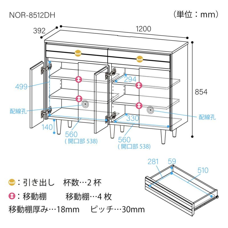 他の画像を見る キャビネット 棚 幅120cm 高さ86cm ホワイト 白単色 ナチュラルブラウン 扉付 引出付き 50V型対応 TVボード サイドボード 収納 リビング 北欧モダン ノルフィカ NOR-8512DHWH 新着 幅120.0 × 奥行39.2 × 高さ85.4(cm) ¥ 27,800 税込 詳細を見る お気に入りに登録する