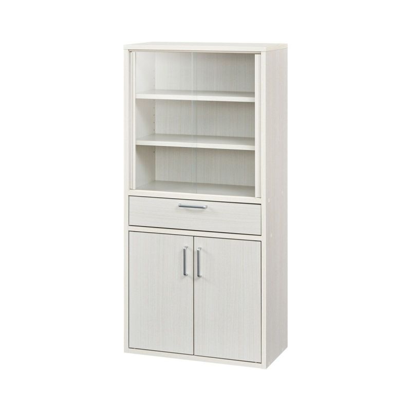 他の画像を見る キャビネット 棚 幅57cm 高さ80cm ホワイト 白木目 ガラス扉付 引出付き リビング キッチン フルニコ FUL-8055GHWH 価格見直し品 幅56.6 × 奥行35.5 × 高さ80.0(cm) ¥ 9,980 税込 詳細を見る お気に入りに登録する